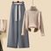 Women's Clothing Autumn Suit For Women New Mid Length Cardigan Jacket With High Necked Sweater Slim Wide Leg Pants Three Piece Suit