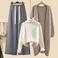 HomeWomen's ClothingWomen's SweatersWomen's Clothing Autumn Suit For Women New Mid Length Cardigan Jacket With High Necked Sweater Slim Wide Leg Pants Three Piece Suit