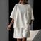 Women's Clothing Casual Suit Solid Color Round Neck Short Sleeve Elastic Sports Shorts Two Piece Suit