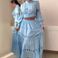 HomeWomen's ClothingWomen's SetsWomen's Clothing Lace Splicing Hollow Lantern Sleeve Tops High Waist Hollow Lace Long Skirt