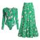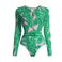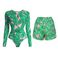 Women's Clothing Swimsuit New Long Sleeved Zipper Green Printed Surf Suit