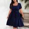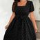 Women's Plus Size Retro Polka Dot Dress - Elegant Square Neck & Wrap Waist | Flared Swing Skirt (S-3XL) | Soft Cotton Blend​​