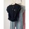 Women's Summer Short Sleeve T-Shirt Gray Love Embroidery Slim Fit Shoulder Top 2024 New Design Casual Fashion